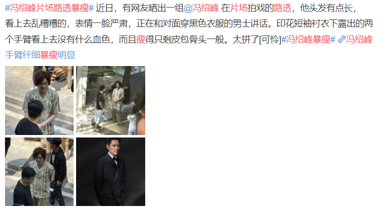 從照片來就能看出他面容憔悴沒有壹點精神,在看到這組路透圖後實在讓人好奇,不知馮紹峰在新劇裡飾演什麼角色,才會被要求瘦成這樣。