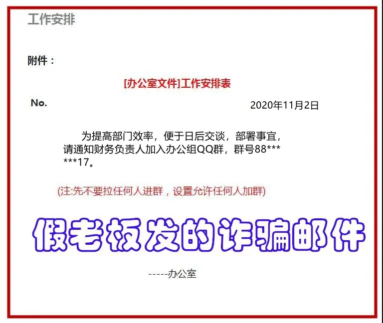 2020年11月2日上午,小劉上班時收到壹封發件人是劉某(公司老板娘名字)的郵件,要求她加入壹個公司內部辦公QQ群。