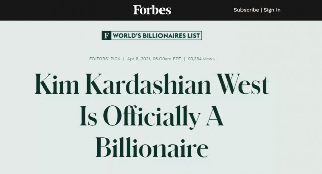 金·卡戴珊(Kim Kardashian)正式成為億萬富翁!