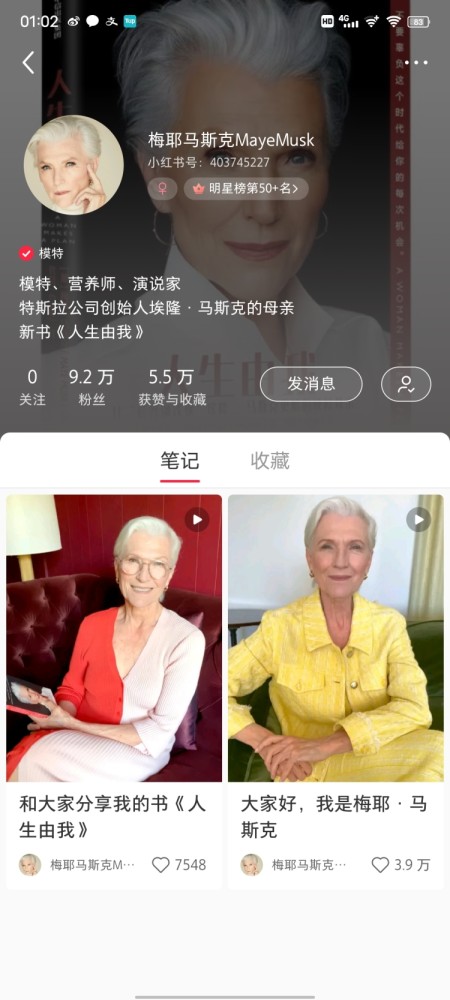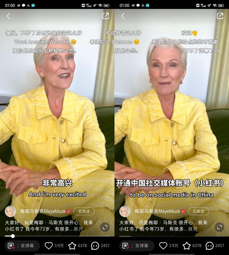埃隆·馬斯克的母親梅耶·馬斯克悄麼聲兒地開通了她個人的又壹個中文社交媒體賬號,這位小有名氣的模特兼營養師這次選擇了小紅書。