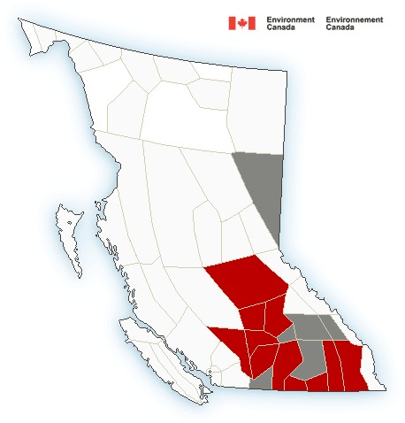 (加西网综合)虽然近两日大温地区气温稍有回落,但是加拿大环境部仍对BC省内陆部分正爆发山火地区发出酷热警告。