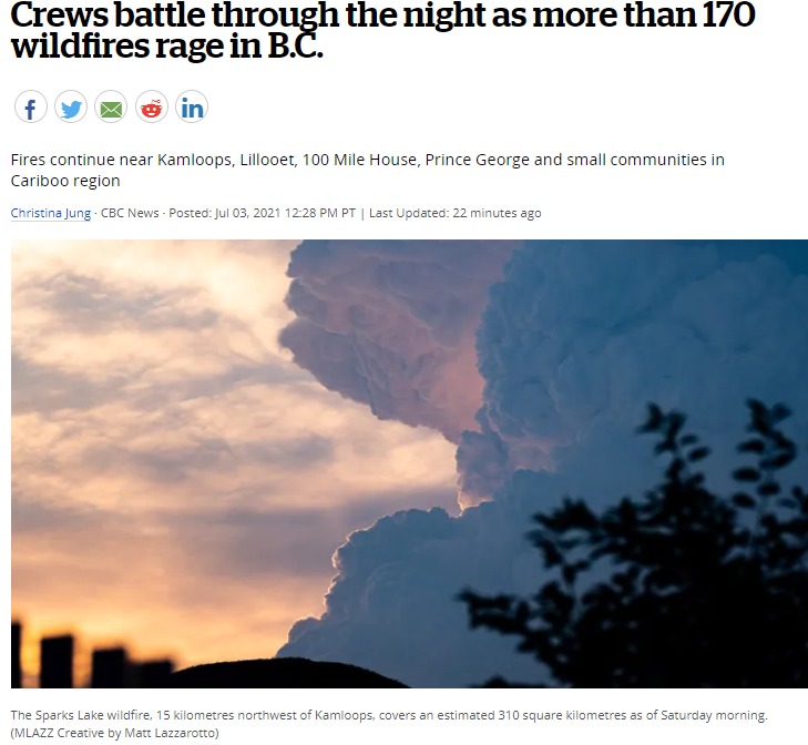 截止今天周六,BC省总计多达 170 多场山火肆虐,消防工作人员这几天一直在连夜奋战。