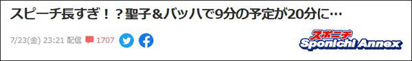 日媒称,奥组委事先提供的资料显示,原定两人致辞加起来共9分钟。可是,实际上两人却耗时共约20分钟。