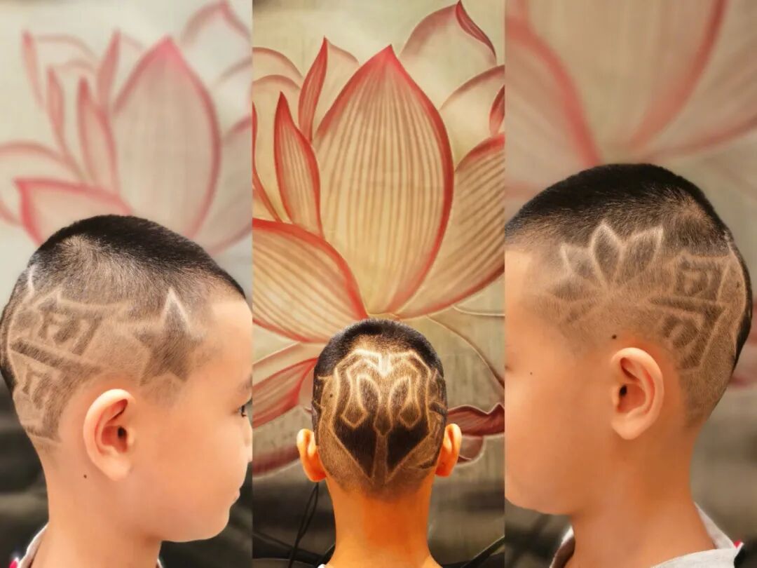 兒子的頭就是自己展示功夫的舞台,還能根據自己的心情變換發型。