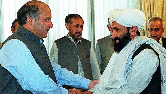 1999年8月26日,巴基斯坦伊斯蘭堡,巴基斯坦總理謝裡夫接見阿富汗外交部長哈桑(右)。圖片來源:視覺中國