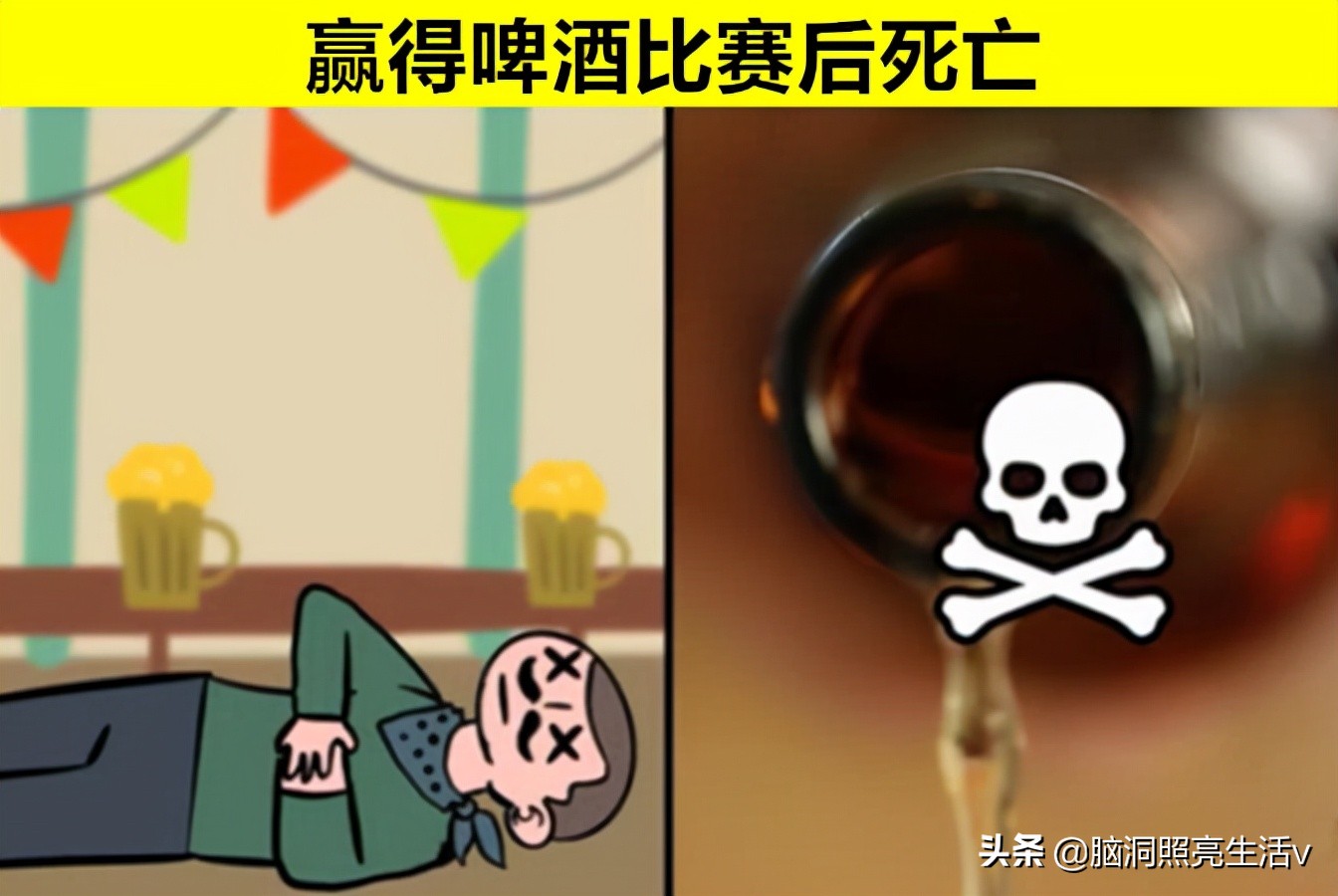 在这个世界上,总会有一些人,因为自己做出的某种非常愚蠢的行为,最终导致失去了宝贵生命,例如,一位西班牙人参加饮酒大赛,由于饮酒过量而造成酒精中毒意外死亡,印度老人被毒蛇咬伤后,不及时救治,反而恼羞成怒的咬死毒蛇,造成了中毒离世,以及俄罗斯一位年轻人,为了追求刺激感,而选择在火车顶上冲浪,酿成了悲剧的发生,这样的案例的确让人感到很可惜,一定要引以为戒,下面小编就来分享一下,把自己蠢死!因为做出的愚蠢行为,而导致失去生命的8个人!1,赢得啤酒比赛后死亡