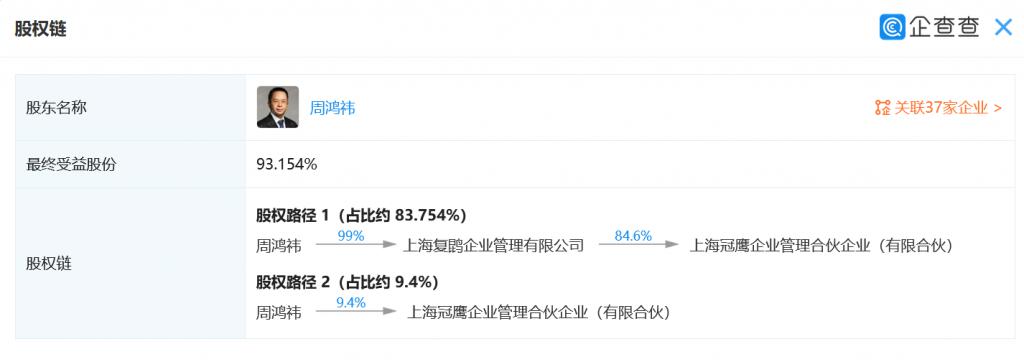 雖然是有限合伙,當家做主的還是周鴻祎。企查查的平台顯示,周鴻祎在上海冠鷹的最終受益股份是 93.154%。因此,這波減持可以看做是周鴻祎的個人行為。