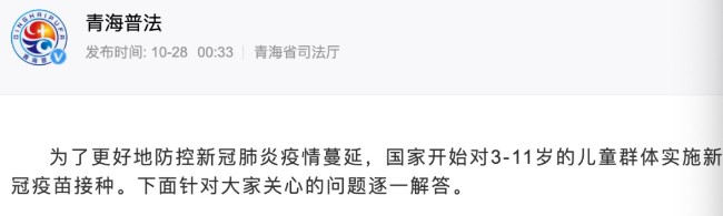 多省的衛健委是有表態的,比如海南,就非常直白地說了,“據海南省衛健委消息:按照國家整體部署,海南省10月24日起全面啟動3—11歲人群新冠病毒疫苗接種。”廣東也是據此表述的。