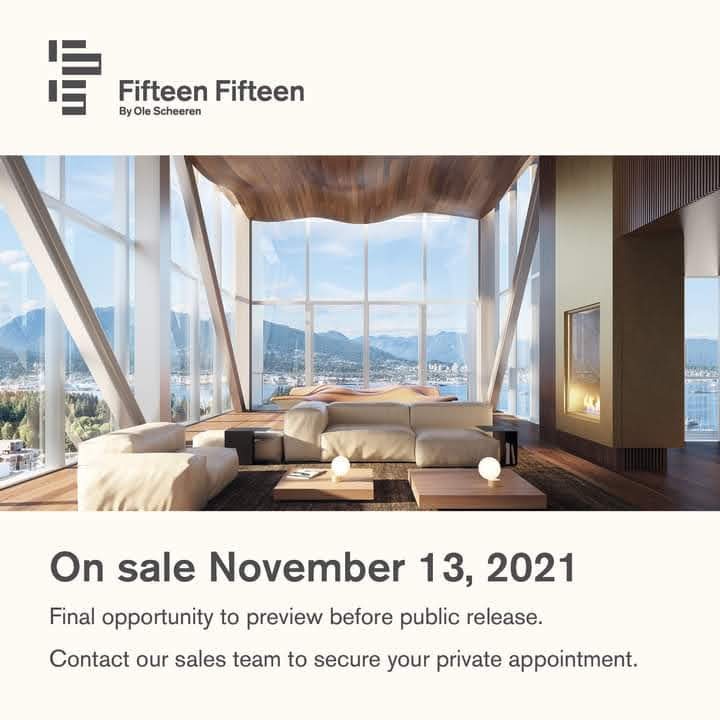 温哥华最贵楼花项目,市中心海景豪宅-Fifteen Fifteen, 今天一日促销,促销内容保密。