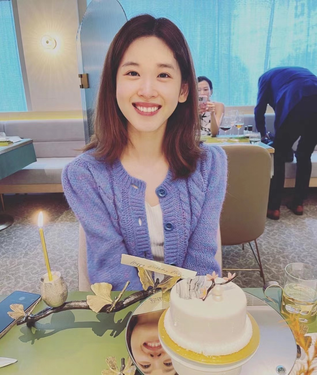 照片中,好在,這次她終於“不懶”了,在社交平台上曬出了自己慶生當天的照片。