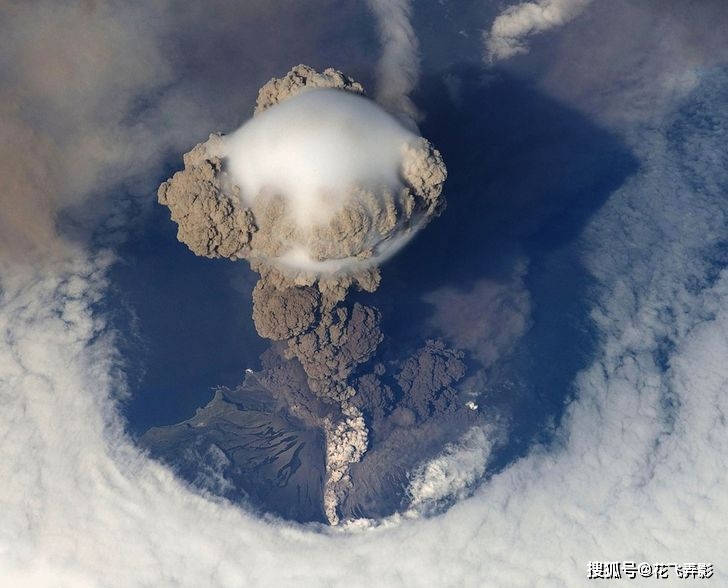 从太空中观看火山爆发的样子。