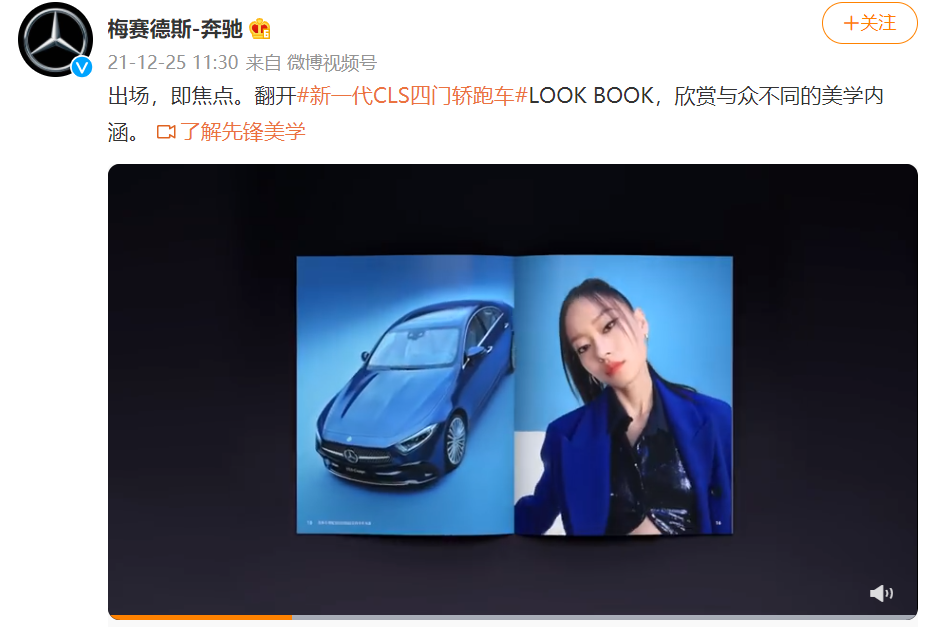 事實上,梅賽德斯-奔馳這條視頻廣告12月25日就已發表在其微博官方賬號上,視頻時長50秒,在視頻中,奔馳為宣傳新車而采用了壹男壹女兩位模特搭檔。