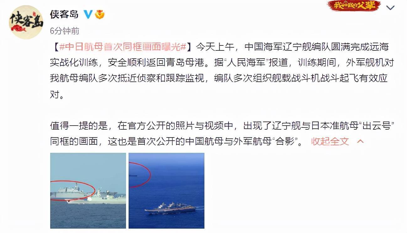 值得壹提的是,在官方公開的照片與視頻中,出現了遼寧艦與日本准航母“出雲號”同框的畫面,這也是首次公開的中國航母與外軍航母“合影”。