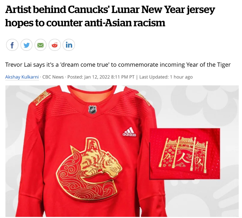 (加西网综合)温哥华加人队特别版农历新年球衣的设计师表示,他希望大胆的重新设计能传达出关于包容性和反亚裔种族主义的信息。