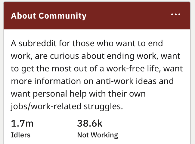 在短短的几天时间里,这篇帖子已经收到了超过80000次的浏览和5000条以上的评论。通过这篇帖子,我们又向上一级搜索了这个成立于2013年的“反工作小组” :现在已经加入了170万成员,并且有3.8万多人处于不工作的状态。