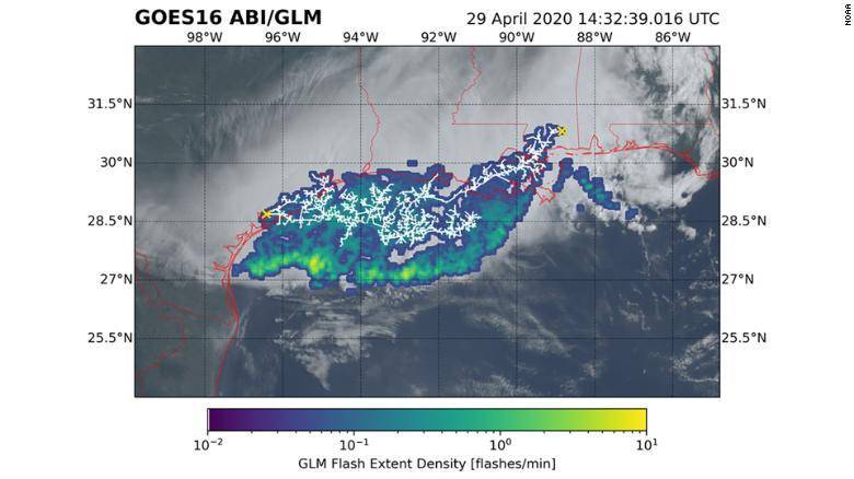 美国国家海洋和大气局的GOES-16卫星在美国南部上空捕捉到的超级闪电数据 CNN图