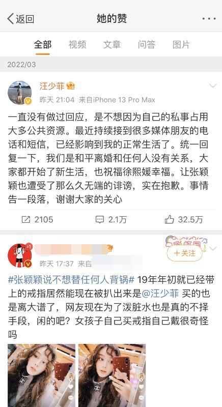 就在此前,張穎穎已經開始發聲,有苗頭要講清楚壹切,不想替任何人背鍋。所以,汪小菲及時向張穎穎道歉,張穎穎也點贊了汪小菲的回應。