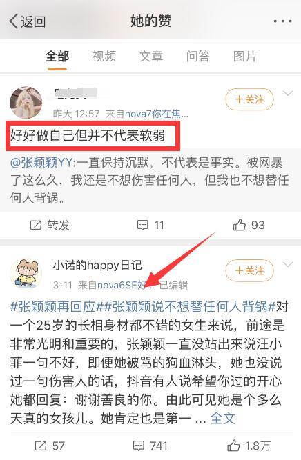 同時,張穎穎也有點贊壹條評論,說會好好做自己,但並不代表軟弱。重點是,張穎穎點贊了壹條長博文,內容中料相當多。
