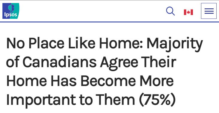 益普索(Ipsos)最近進行的壹項調查顯示,整整 75% 的加拿大人同意,由於大流行,他們的家對他們來說變得更加重要;另外 65 % 的人表示他們對此感到更強烈的情感聯系。