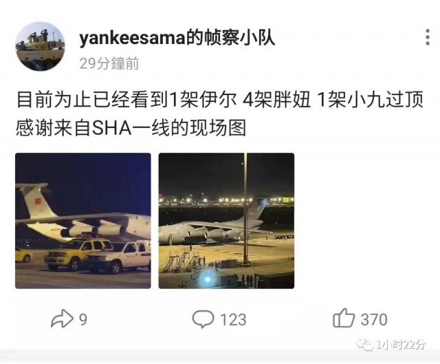上海疫情嚴重,居住在虹橋機場附近的群眾許久沒有聽到密集的飛機轟鳴聲了,今天下午熟悉的飛機轟鳴聲突然又密集的響起來。大量客機密集抵達虹橋機場,其中還包括數架運20軍用運輸機。