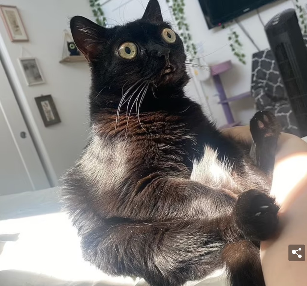 同样由于先天缺陷,这只猫科动物在网上引起了轰动,在过去的三年里,它的主人每天都在不断地发布这只宠物独特外表的照片和视频。