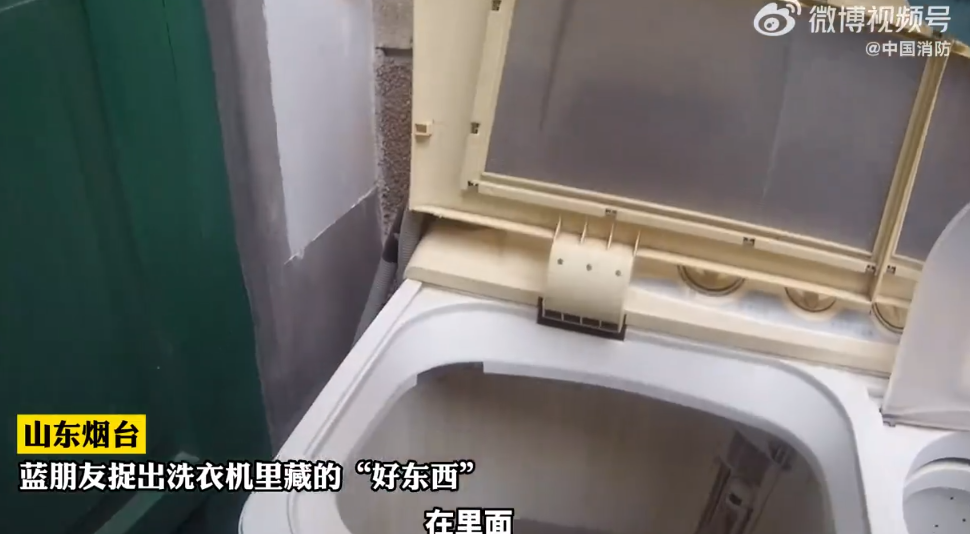 近日,山东烟台,女子家中用洗衣机洗衣服,惊现一条蛇,大惊失色吓得报警求助。