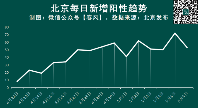 雖然北京本輪疫情是從4月22日開始,但22日當天只有8個陽性,23日增加到23個,後面逐步上升到50個左右,到達壹個平台期。
