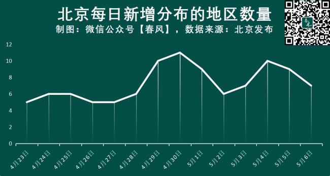 北京全市下轄16個區,目前已經15個區都出現了陽性,目前還看不到明顯、穩定的下降趨勢,下圖是每日新增陽性分布的區的數量。