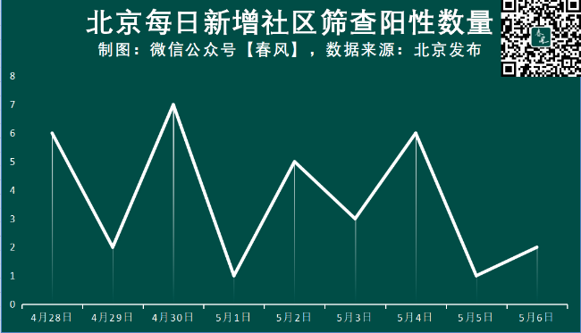分析上海疫情發展趨勢壹個很重要的數據是管控外的野生陽性數量,但是北京因為核酸數量速度不穩定,社區篩查陽性數量波動也較大,參考價值比上海要小很多: