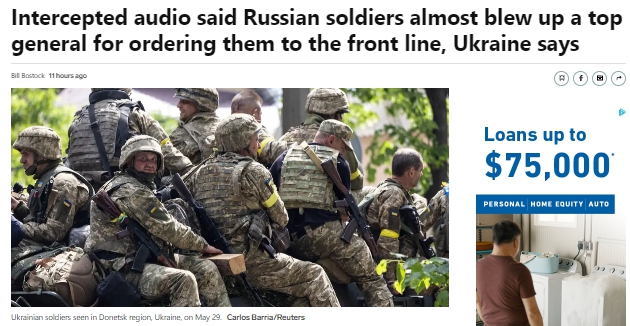 周贰(5月31日),烏克蘭情報機構稱,截獲的電話顯示,俄羅斯士兵差點殺死壹名命令他們奔赴前線的高級將領。