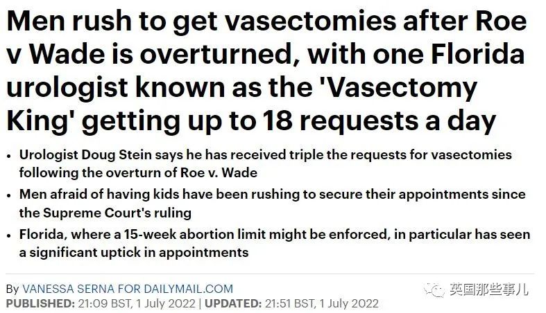 这几天,美国的一些男性也慌了,正在扎堆预约去做结扎......