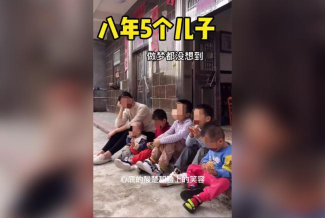 廣東湛江壹名90後八年生了伍個兒子。(視頻截屏)