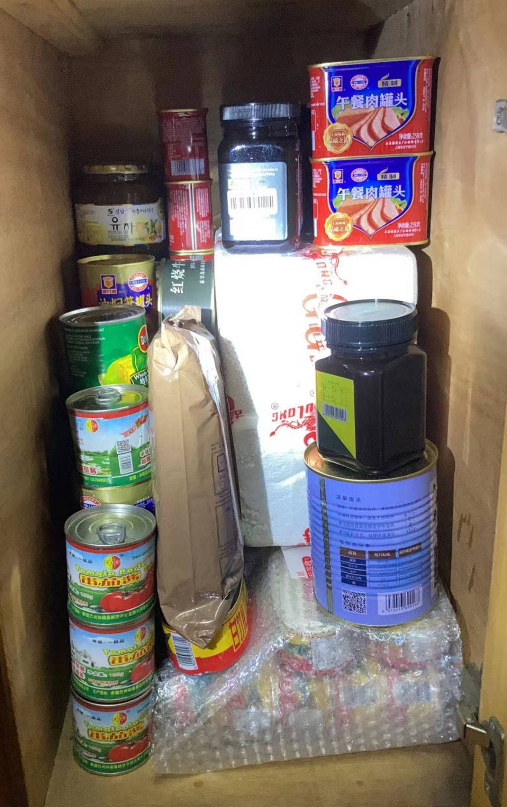 她在這座城市打工上班,租住在壹間合租房裡,如今客廳裡有1平米左右的地方堆滿了吃的,臥室裡也有,廚房也堆滿了。除了食物,還放了叁個不同等級的應急包。過去,在汶川地震、武漢疫情發生的時刻,她壹直在為最壞情況做准備——制作生存工具包、學習開車、釣魚、急救等技能,囤積保質期長達25年的食品。