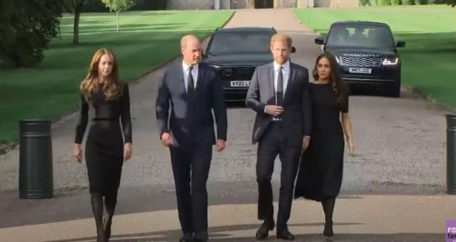 据报道,威廉王储、凯特王妃以及哈利王子和妻子梅根等4人在温莎城堡(Windsor Castle)与悼念英国女王的民众见面,不过眼尖的皇室粉丝却意外发现,在梅根裙子下方,看见一个方型物体,引发外界揣测该物件为“录音设备”、“配戴秘密麦克风”,让大批英国国民感到相当不满。