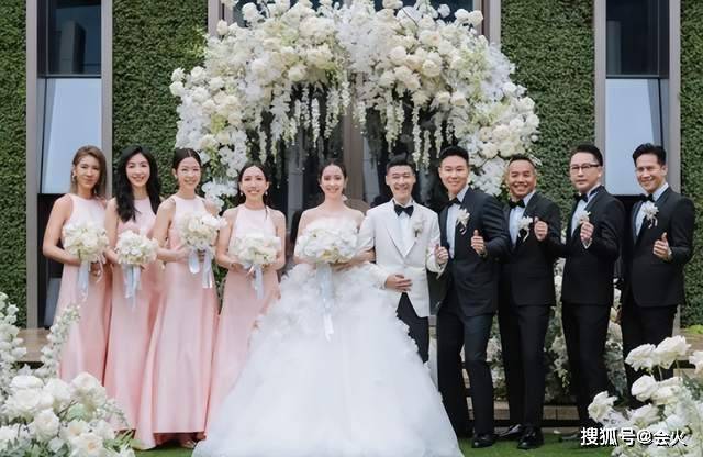作为着名艺人胡瓜的干女儿,婚礼上也是看到了很多熟悉的面孔,譬如在伴娘团中,我们就可以看到胡瓜的女儿胡盈祯以及着名演员杨谨华。美丽的伴娘们身着粉色无袖礼服,既不喧宾夺主又相当大气。