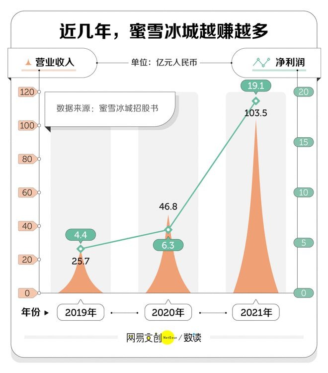 不僅是營收,蜜雪冰城的淨利潤也不斷增長。2019年,蜜雪冰城的淨利潤為4.4億元,2021年達到了19.1億元,叁年增長了334% [1]。