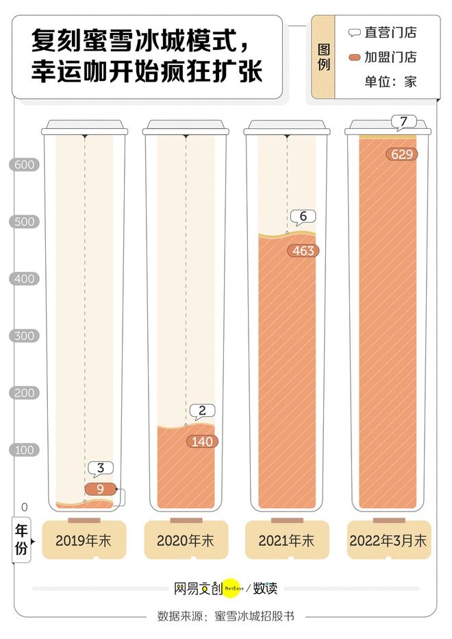 旗下主營咖啡的品牌幸運咖應運而生。還是原來的配方,熟悉的味道,幸運咖也采用蜜雪冰城的單店加盟模式,公司不參與分成 [10]。