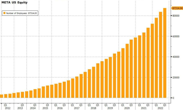 其他科技巨頭壹樣,受益於疫情期間居家生活模式的推動,Meta在此期間大舉招聘,2020年和2021年共計增加了超過27000名員工,今年前9個月又增加了15344名員工。截至今年9月底,Meta員工總數超過了87000人。