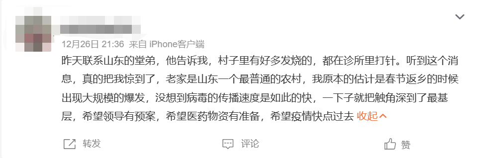 網友稱,病毒的傳播速度出於意料。/微博截圖