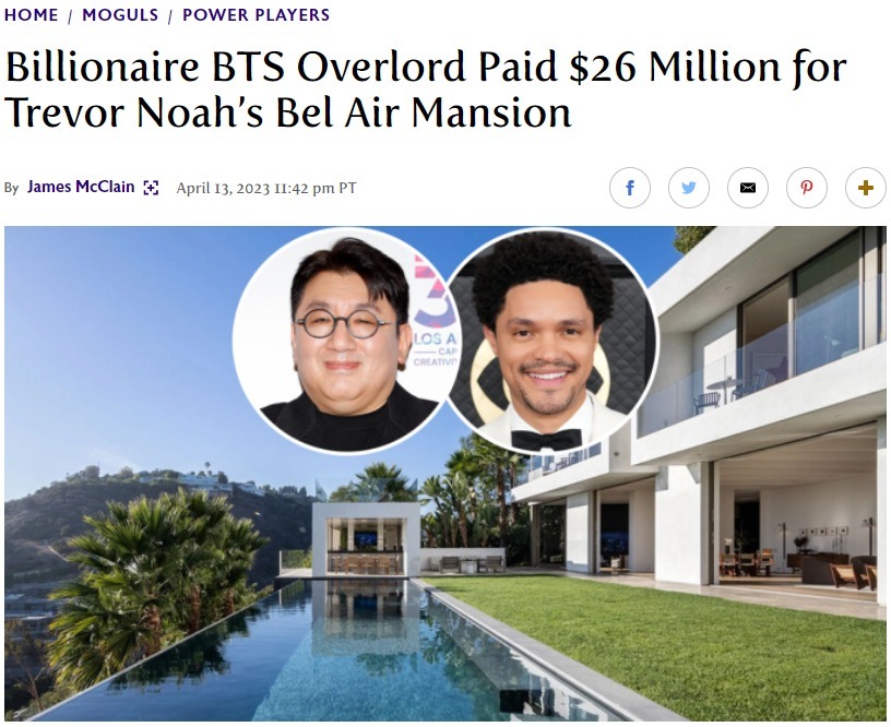 最近他在洛杉磯豪宅區 Bel Air 的超級豪宅被成功售出,買家是來自韓國的娛樂圈知名制作人方時赫(Bang Si-hyuk)