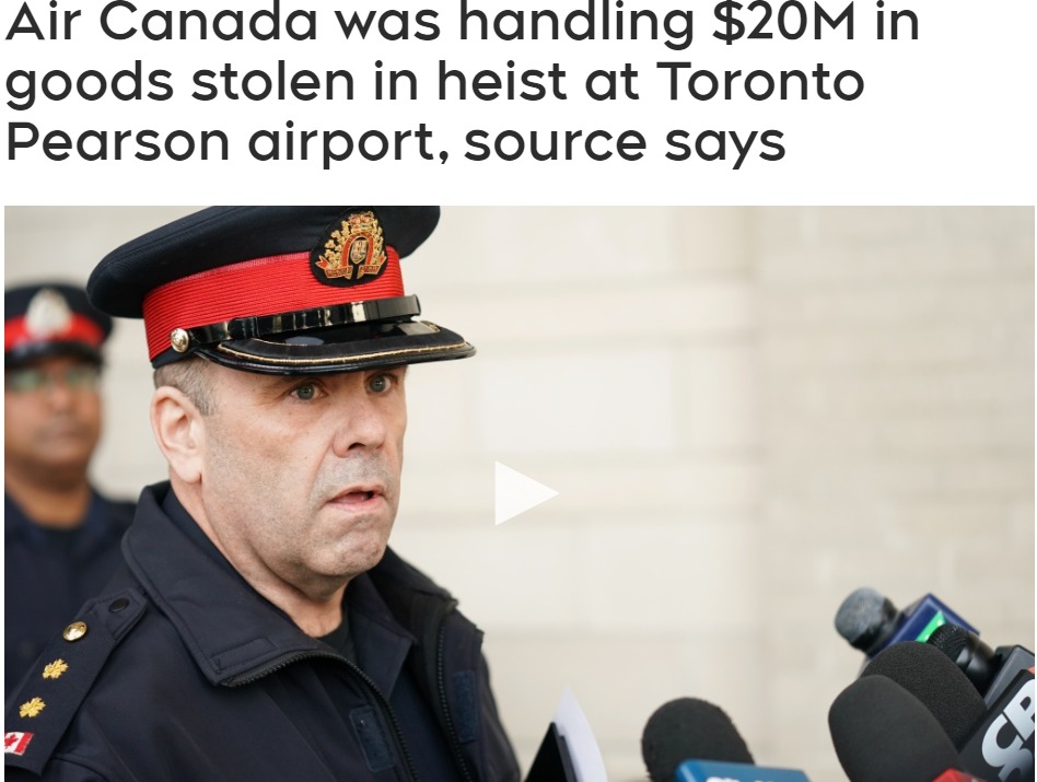 根據CP24的報道,多倫多皮爾遜警方(Peel Regional Police )於昨天就多倫多皮爾遜國際機場發生壹起盜竊案舉行新聞發布會,稱這起搶劫案發生在本周壹,當時壹個 "高價值集裝箱 "從壹架降落在機場的飛機上卸下後,被人從擱置貨物的中心偷走。警方表示,事發於周壹傍晚時分,壹架飛機抵達多倫多機場。按照正常程序,飛機卸下的貨物被運到壹個貨物儲存設施。