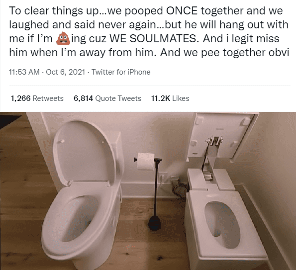 两人称对方为灵魂伴侣,同吃同睡同住,形影不离,连上厕所都不想分开,黏到给自家厕所里修了一个双人马桶,专门一起大小便…