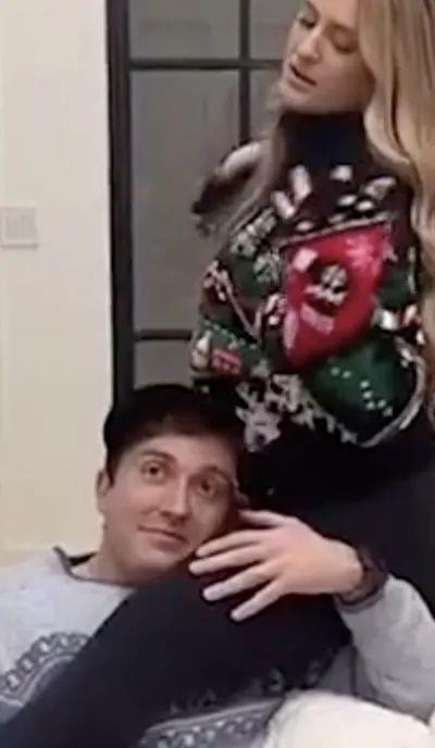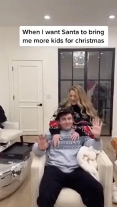 还有就是某次圣诞节,俩人深情共舞向圣诞老人求子…达利坐在沙发上配合,而梅根一会摸他的胸,一会骑在他肩膀上扭动,也不知道是不是因为这舞有了二胎…