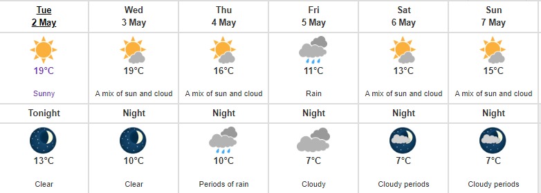 根據加拿大環境部的預測,大溫地區今天周贰預計陽光明媚,天氣溫暖。近海地區最高氣溫為19攝氏度,內陸地區為23攝氏度,本周大多時候都有陽光, 只有周伍有可能出現陣雨天氣,天氣稍涼,最高溫度跌到11度,預計周末陽光又重返大溫。