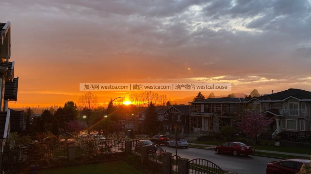(加西網綜合)昨天5月的第壹天,溫哥華人又看到久違的春日夕陽,在傍晚的陣雨之後,夕陽在落下之前,努力把最輝煌的色彩留給人間,把天空塗成橙色,紫色,最後粉紅色,很多人不禁駐足欣賞大自然的饋贈。