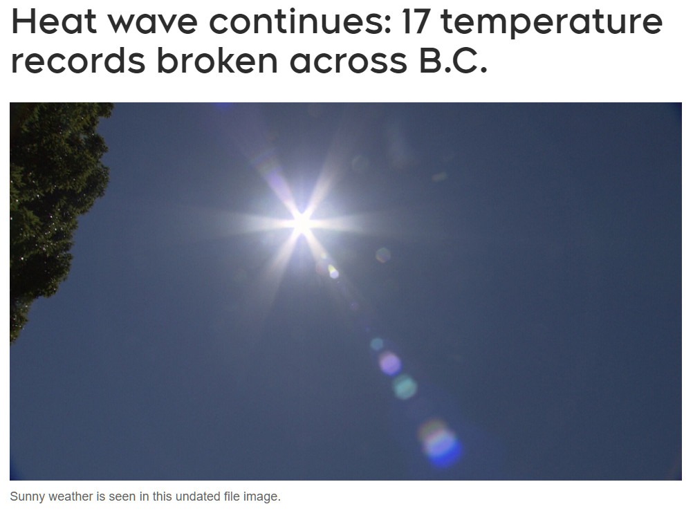 自周叁下午以來,特殊的天氣聲明已經生效,但並未發布高溫警告,主要是因為夜間氣溫較低,會使房屋明顯降溫。例如,阿伯茨福德的日間最高氣溫達到 31.6 攝氏度,但壹夜之間降至 13.3 攝氏度。