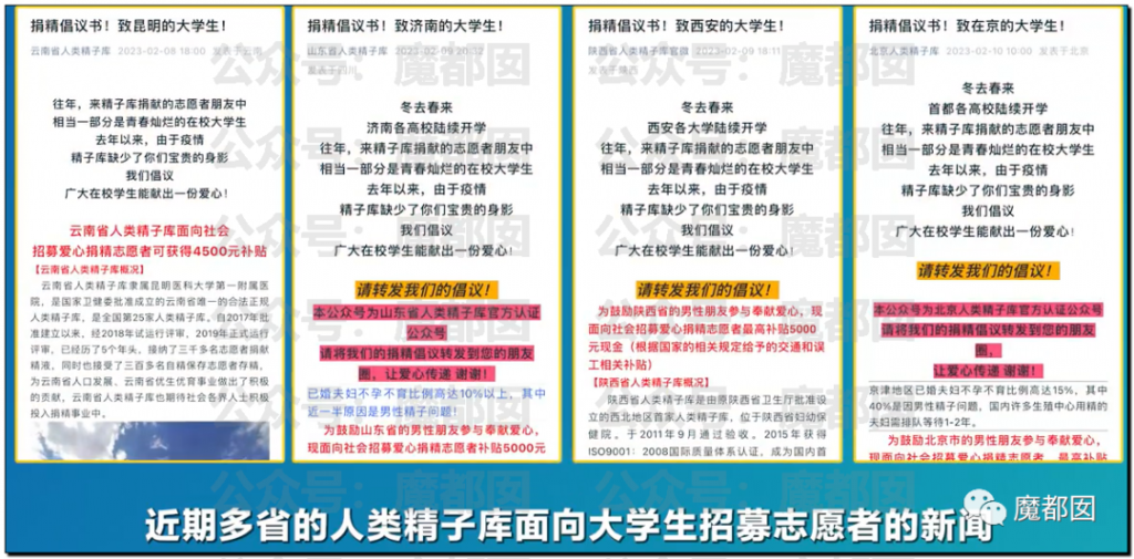 但是的確這幾天超級多的男粉絲來和我吐槽這個事情,這幾天已經連續熱搜了,主要是各地精子庫開始連續向全社會招募大學生進行捐獻。