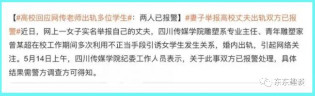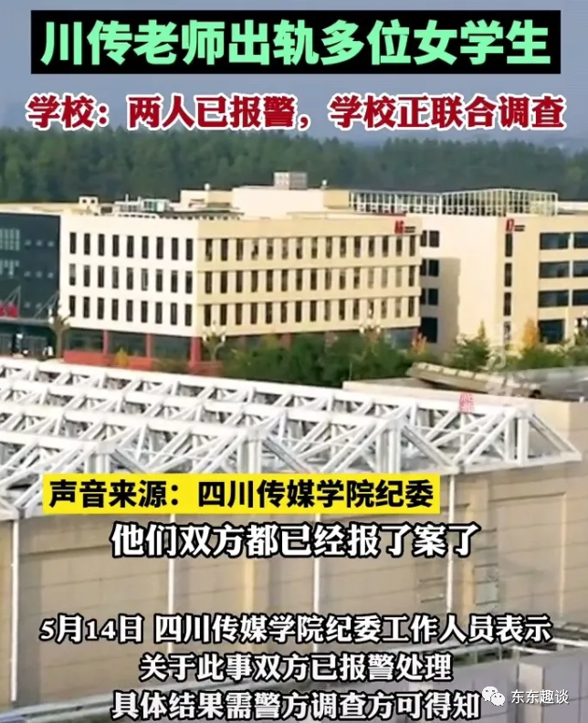 事情起源於夫妻的感情糾葛,不過中間涉及到肆川傳媒學院的女學生,學生沒有舉報,而是曾老師的妻子在網絡上舉報丈夫不軌行為。