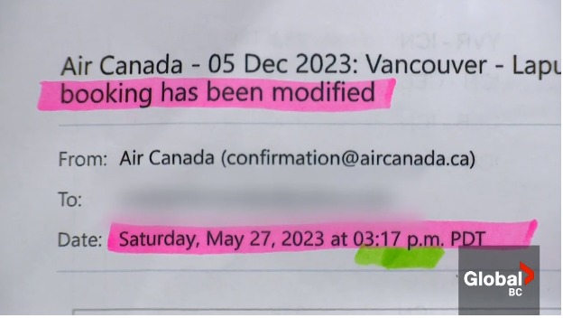 加拿大航空公司壹名工作人員讓費爾南德斯在網上重新預訂機票,並對行程的返程部分進行修改。費爾南德斯也在最初預訂後的4個小時內做出了更改。