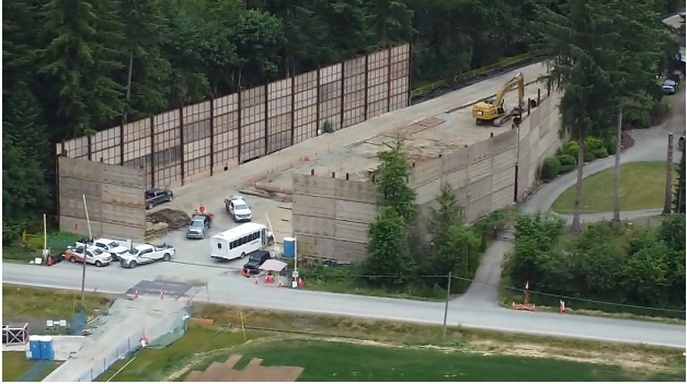 在街對面,橫山管道公司(Trans Mountain)的承包商正在 240 街進行開挖的鑽孔工作,以擴建管道。